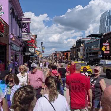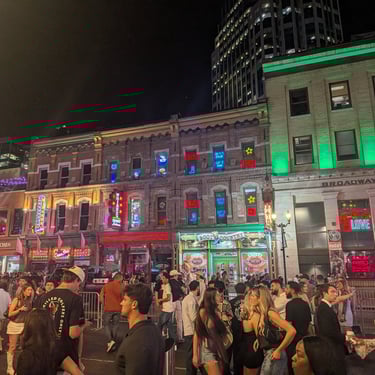 I didn’t expect Nashville to surprise me so much. By day it felt almost like a slow city—easy sidewalks, sunlit porches, and a sense of time moving gently. But at night the whole place flips into something electric: streets close, crowds pour in, and downtown becomes one long party with DJs, live music spilling from every corner, drinks and sweet treats at every turn, and a sense that the city is celebrating all night.